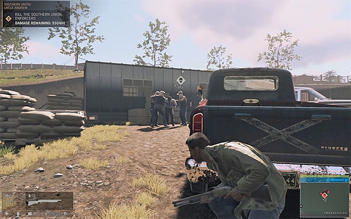 This objective is related to possibility to kill even five enforcers. Each successful assassination will weaken the Southern Union by 7500 dollars. Uncle Bartholomew can be found in the alley at the back of the garages. You can shoot him down with a good rifle or drop a Molotov's cocktail to the place where a group of enemies is standing. Sadly, by doing so you can kill an innocent civilian that is tormented by the racists (the same goes for a few other enforcers described below).