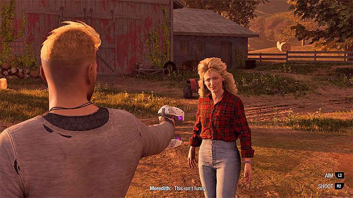 The second option requires you to see through the illusion and realise that the main character is being subjected to a gradual "brainwashing". After defeating the group of opponents, aim your blasters at Meredith and continue shooting. Finally, press the interact button. By turning against Meredith, you will successfully complete this scene, which is required to further progress the main story.