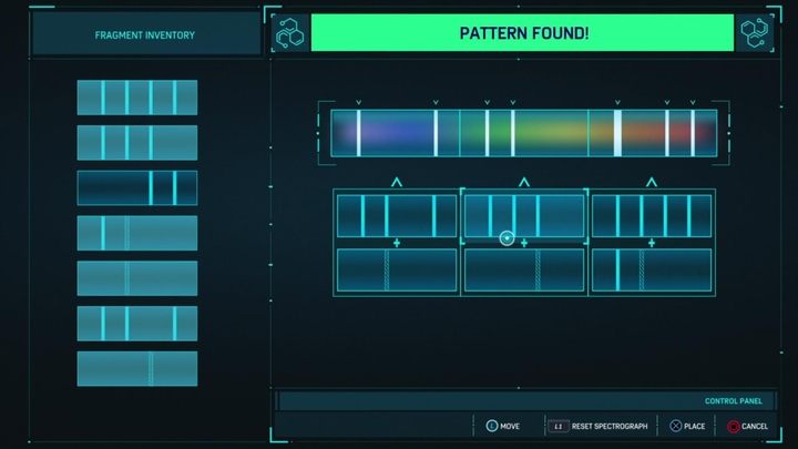 Once you have started your mission, go to the chimney and start diagnosing the substance. You need to discover the substance pattern - you will find the solution above. Press R3 and move along the backlit pipe. You will reach the next chimney, where another minigame is waiting for you with joining the correct fragments. After you complete it, press R3 again and fly to the next point of substance outflow where the third and last riddle awaits.