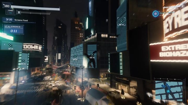 You have yet another mission to complete, one of the "search and destroy" type. You have to get to a large building with screens - arm yourself with an electric web and destroy all screens. You can aim from a really long range, so try to keep a reasonable distance. You need to destroy all 20 screens to complete the mission.