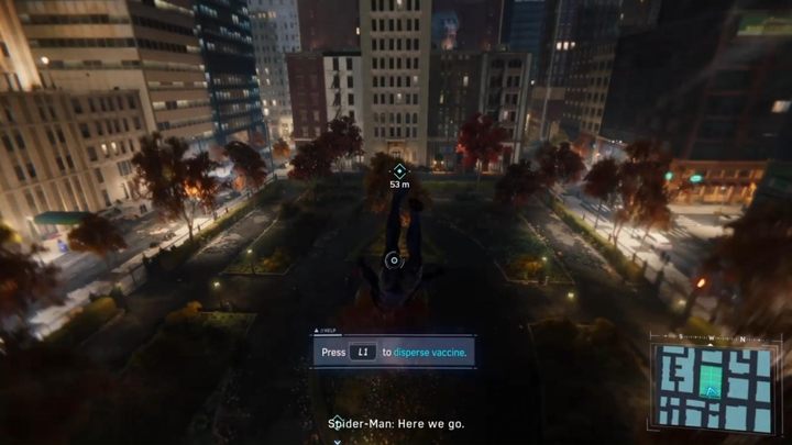 Go to the place marked on your minimap. You will get to the park - fly over it and use the L1 to spray the vaccine. After that, go to the further locations and repeat the procedure. Then, go to any place you want and scan the pigeons - the mission will end.