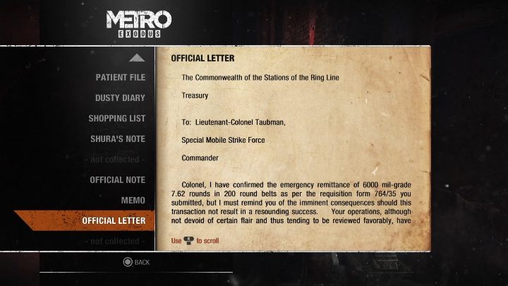 The first location of Metro Exodus has two postcards and nine journals. The majority of them is well-hidden. Check this page to find all secrets in Moscow.