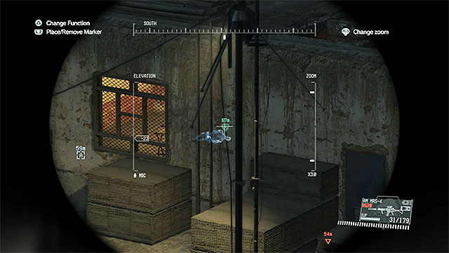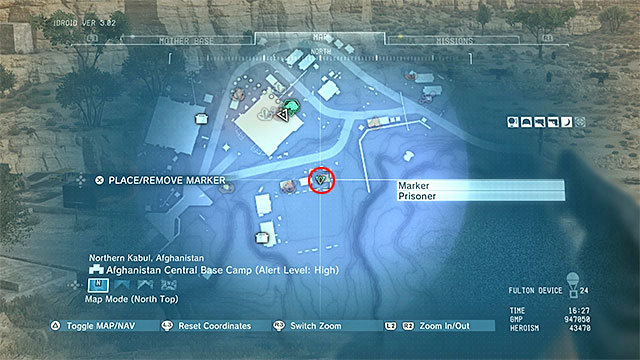 Description: Another gunsmith is held in the Yakho Oboo Supply Outpost, which should be approached from the North-West. Use your binoculars, as well as D-Dog to locate the hostage - he's located in one of the buildings in the Western section of the base, as shown on the above screenshots. Go there and try to remain undetected. After arriving at the gunsmith's position, pick him up and go to the neighboring room. Place him directly below the hole in the roof and fulton him to the Mother Base.