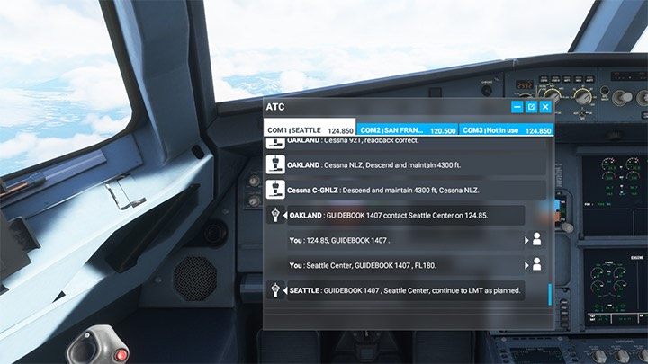 From time to time, you will be contacted by other ATC controllers, who will confirm the tracking of your flight and often report on other machines passing nearby.