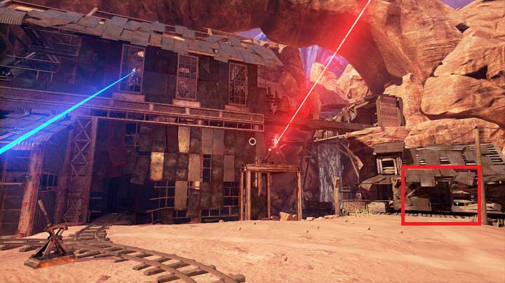 Now you should move to the right, to the center of Hunrath. On the way you will bypass collapsed mines and a few levers. For now you shouldn't use them. In the central point between the buildings you will find another sign with a hologram. Josef will tell you about the good sides of the city center and he will suggest that at this point you should have already encountered many citizens. As you noticed, the city is empty. You won't find anything useful in the nearby house, but you will easily notice that the same diagram that you took a photo of at the house with the white fence was placed on a few buildings. You can look around the area, but you won't find anything useful. Go directly to the house above which you will see a red beam of light.