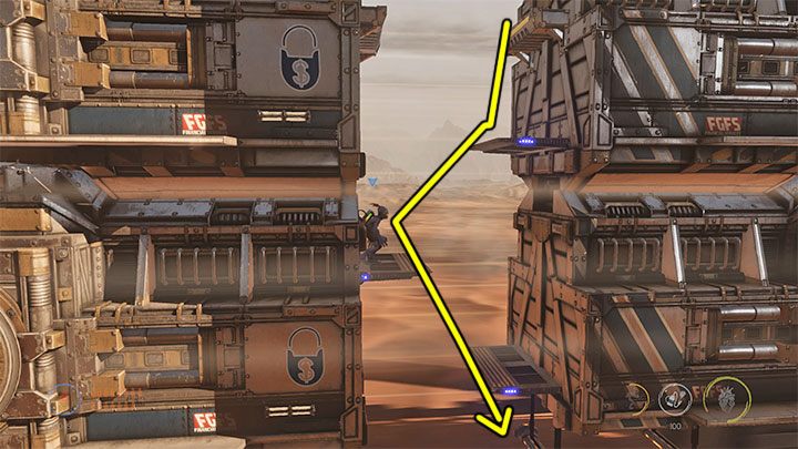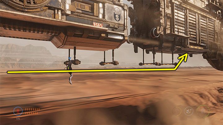 Abe will then have to reach the two newly unlocked wagons. In the case of the first wagon, jump onto the bars shown in the screenshot. They can be found to the left of one of the checkpoints. There's also a Royal Jelly inside the wagon.