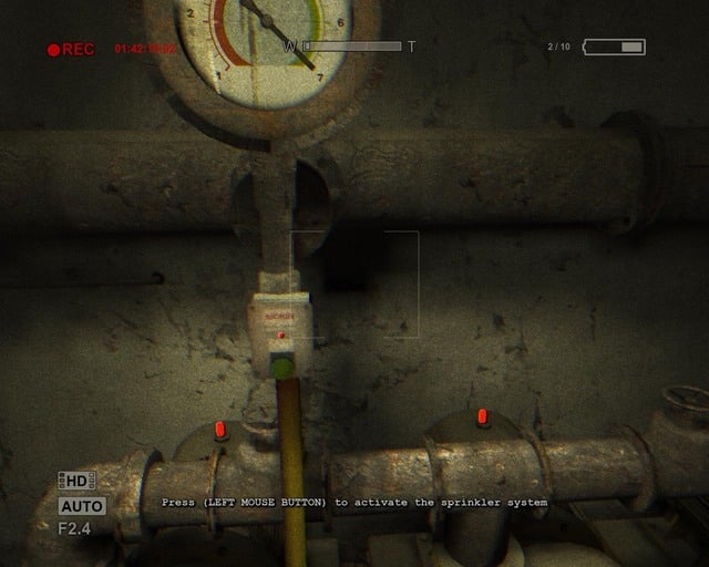 This will turn on the fire sprinklers and flood everything. Backtrack to the burning room, now doused, and look around for an open double door. They will lead you to the kitchen where you'll be assaulted by one of the aggressors.