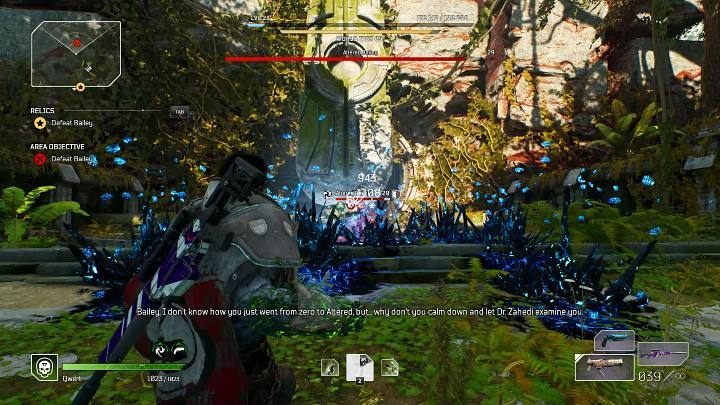 During the fight it is worth taking advantage of the two giant stone pillars, which will give you excellent protection against Bailey's automatic weapons. This tactic is especially effective if you are using automatic turrets, or if you can apply Bleed or Toxic statuses to the enemy, which will additionally drain the boss's health and heal your character as a result.