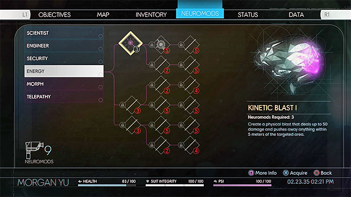 Performing the required number of scans unlocks the given power (e.g. see screenshot 1), which still requires a certain number of neuromods. Morph powers are often very expensive, and may force you to spend even up to 3 or 4 neuromods in order to unlock them.