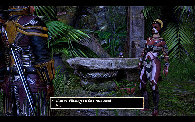 After descending the hill, head towards the pirates beach (point 12b on the map). If you haven't yet secured both sections of the jungle, be prepared to encounter several monsters along the wait - try to protect Miamiti at all costs. After reaching the destination, listen to the conversation, in which the girl will thank the Nameless Hero for helping her out.