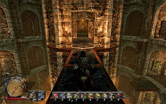 If you have taken the correct stairs, you should reach the upper balconies above the cell with Chani inside. Around, there are Skeletons, Minions and Ghouls, although none of them pose a threat to you. Examine the abovementioned balconies and find the last lever. Pulling this one opens the cell.