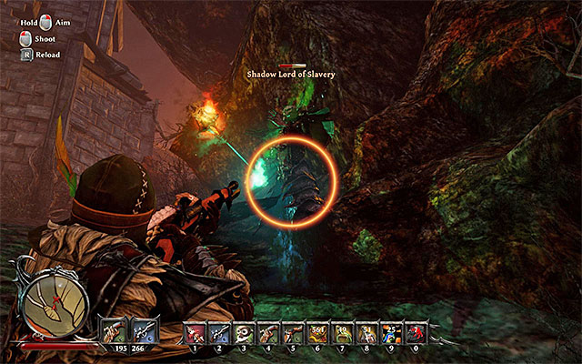 Regardless of which path you have taken, your destination is the area that Gray pointed you to (point 1i on the map), because this is where the Shadow Lord of Slavery is. During the fight with the Shadow Lord, rely on dodges and do not forget to use your best attacks. Kill the monster (600 Glory Points), collect his Raw Black Heart and return to Gray (point 1f on the map) to report to him. You will be rewarded with 300 Gold Pieces.