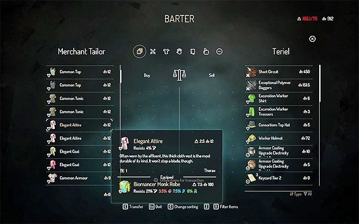 During this quest you have to go to a party but BEFORE you go there, Teriel needs to wear an elegant set. Parts of it can be found during exploration or, e.g. by visiting the tailor in the Warden's Hold (see the picture). Teriel needs to wear four elements of the elegant "set". Three of them are fixed - a hat, trousers and shoes. When it comes to the fourth element, you can choose from a few available options (e.g. an attire or a coat).