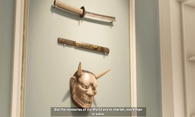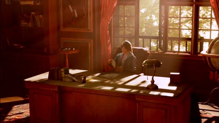 When butler goes to Lara's room he passes all her artifacts and loot from the last expedition. The game shows us each of them. In the background, Lara's voice accompanies us all the time.