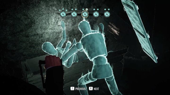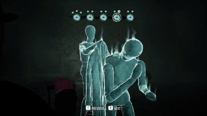 After collecting all the clues in the warehouse's undergrounds, you will unlock all the scenes in the imagination mode. Activate the concentration mode and approach the place where you found the shirt and the cut cord. Select the scene shown in the image above.