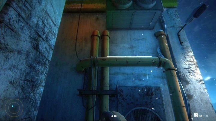 A new Mask Mode system will be unlocked during this particular moment. Once activated, all objects you can interact with like items that can be collected, corpses that can be moved or places to climb - will be highlighted. Active this mode and look at the wall with the pipes - it's located opposite to the wall on which you climbed.