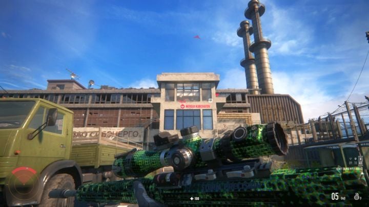 When you clear the area of enemies, go to the building in the south and look east - there, you will see the building inside which Prime Minister Kurchatov, the main objective, is. The previously mentioned jammer is near the building - shoot its control panel to disable it and be able to mark enemies.