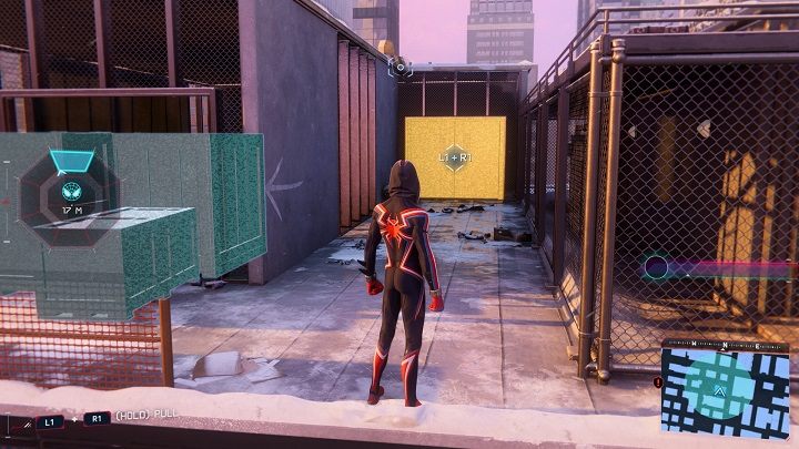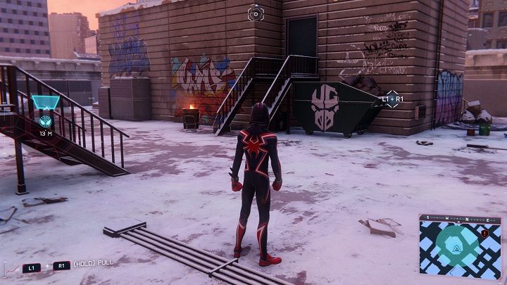 2) The next cache is located near the cemetery. To get to it, you will have to open the gate. Press L1 R1 on the gear and quickly aim (L2) and shoot (R1) at it from the Web-Shooter.