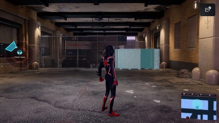 2) The box in the center of Greenwich is in the garage of the Roxxon station. Pull the left gear (L1 R1) and quickly aim (L2) and shoot (R1) it from the Web-Shooters to open the gate.