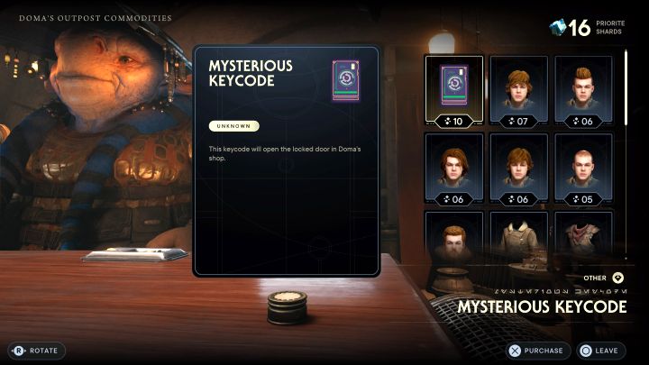 Mysterious Keycode is a unique buyable item appearing in Jedi Survivor. Our guide shows how to unlock Doma's Outpost Commodities store (first step), how to buy the Mysterious Keycode, and what are its uses.