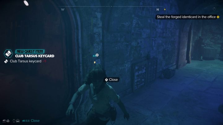 To get inside, you'll have to steal a keycard from one of the club's guards. You will recognize them by their blue uniforms and armor. When stealing, use Nix's help.