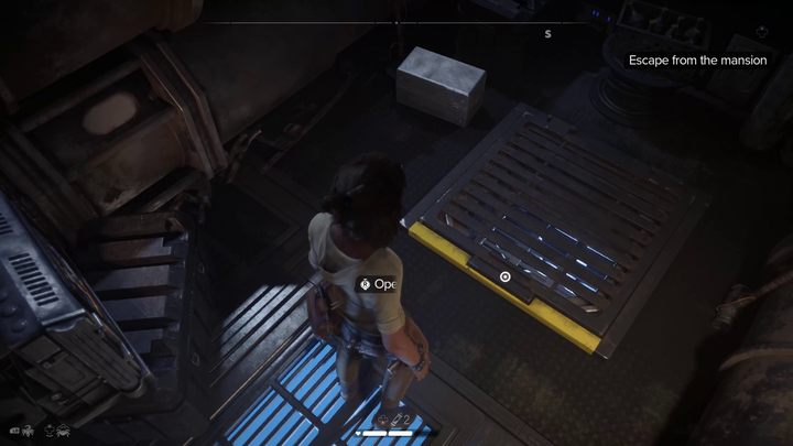 Once inside, approach the metal structure on the left. Press the button that appears on the screen to use the grappling hook. Then complete a short climbing sequence.