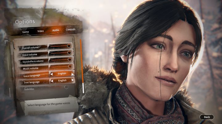 In Syberia: The World Before you can change the subtitles and UI language at any time. After pressing pause (ESC), the game menu will appear - go to options, open the audio tab and select the appropriate language of subtitles.