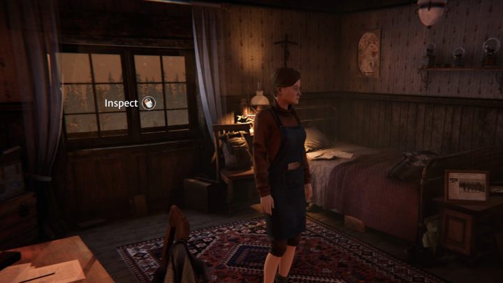 Climb the stairs to the upper floor of the refuge. Examine the window and open it while holding the handle with LMB.