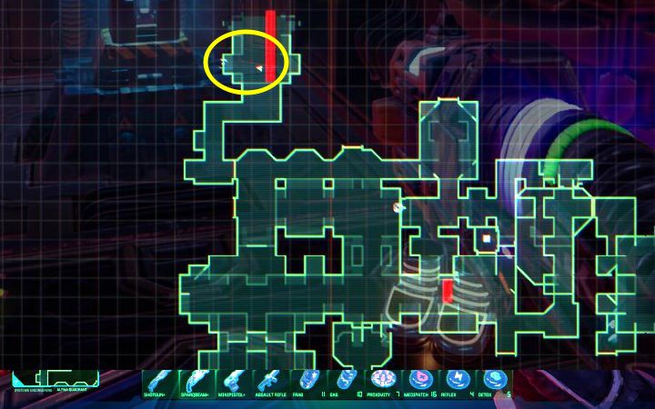 This implant adds a full-screen map of the area (drawn as you explore the decks) and a minimap (bottom left corner of the screen).