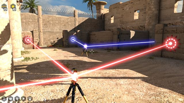 Now go from the other side and pick up the connector. The same thing you will have to do with other two. Other connectors should be directed on the red button and the red transmitter behind the barrier. One more thing to do is to take the hexahedron from the ball to block it so it won't cut through the red beam.