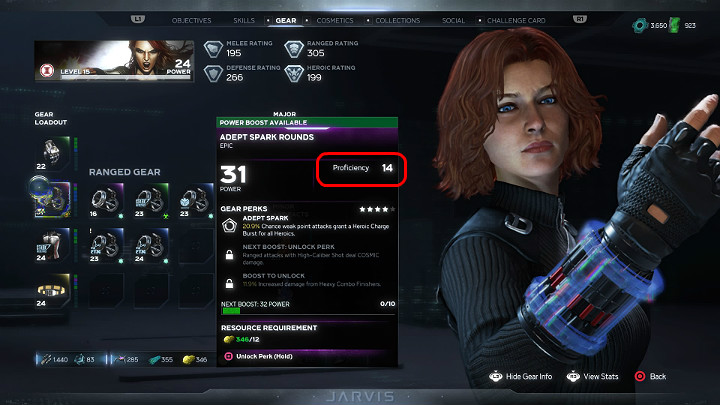 Every item you find in Marvel's Avengers will have a certain value for a specific attribute. Some better items may have a bonus for up to two attributes. In the image below you can see that Black Widow's Epic item has a +14 Proficiency bonus, which increases the chance of a critical hit and also affects the frequency of activating an item skill.