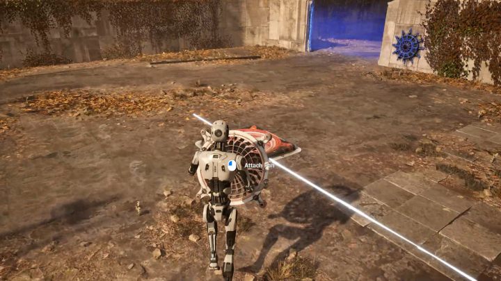 - Once the platform stars moving, approach the barrier by the blue button.