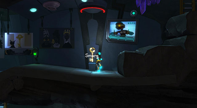Now switch to the character in the future and pick up the Smurg which you have passed by on your way to the dinosaur model. Move to the present times and use it to open the Locked Door to the left of the time machine. Afterwards open another one and yet another after crossing the long corridor to the left.
