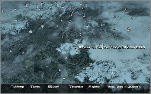 Open the world map and you'll see that the allied forces are waiting some distance away from Fort Snowhawk (the above screen), so I don't recommend using Fast Travel. The fort itself is located in the north part of Skyrim and it's best to travel there from Morthal, heading west.