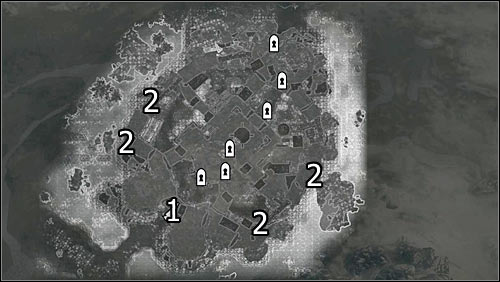 Labels on the map: 1 - main fort entrance; 2 - other easily accessed entrances into the fort (usually unguarded).