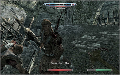 No matter the tactic, fight until the enemy "strength" parameter drops to 0%. This should force the remaining Imperial Legion soldiers to flee (the above screen). The mission is now over and you can continue with the Liberation of Skyrim (main objective: Report to Ulfric Stormcloak #4).