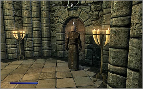 Listen out to a short conversation with Ancano, from which you will learn that a member of the Psijic Order came to the College and wants to speak only with you. Follow the Thalmor, who should lead you to the entrance to the Arch-Mage Quarters (screen above). Open the door to head inside.