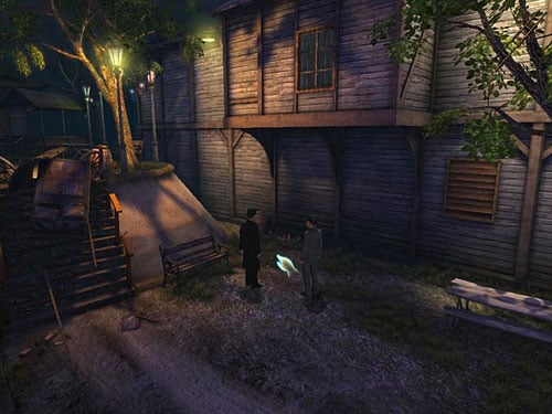 Go to the main road and head for carousel. Go downstairs on a round place, circle the carousel and head to the Haunted House (merry-go-round should be on your left; while passing it, Watson will notice a control panel).
