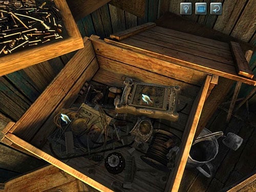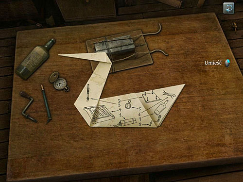 In the next zoom, take a look at the scheme. It shows a sequence in which you have to join elements to create a bomb. As you can see, some of them are missing. So you have to search the workshop.