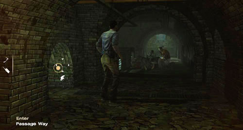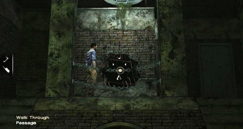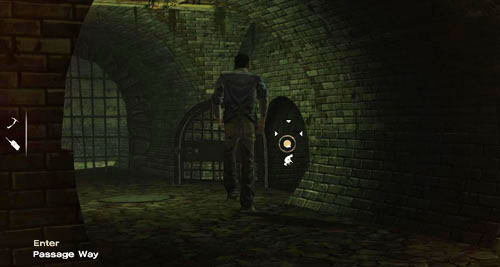 The way out (Look At: Passage Way) is blocked by a group of zombies. The closer you get to them, the redder the screen will become till the zombies will finally bite you to death. So don't go near them. Instead, enter the low Passage Way on the left.