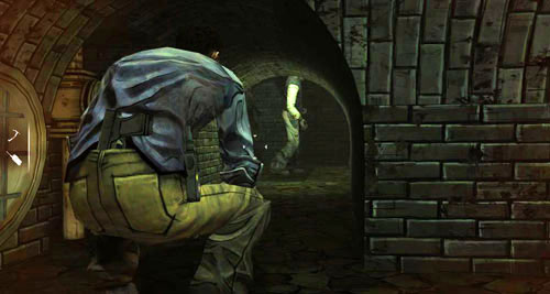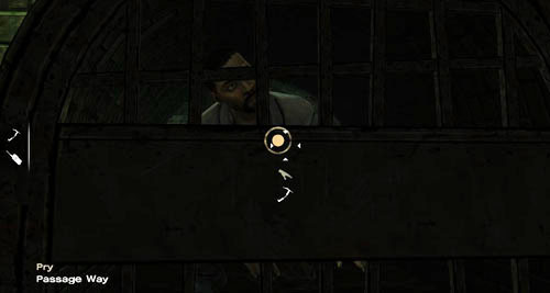 When the cutscene is over you will regain control over Lee. You can look at the Ladder, but this way is cut off. Go down the steps and go right. Along the way, you can look at the grates (Look At: Grate), but you won't be able to do anything with them. You'll reach a tunnel leading down. Lee will topple over if you choose to go in the middle of it. If you go along the left or right side of the tunnel - it won't happen. However, it does not really matter anyway.
