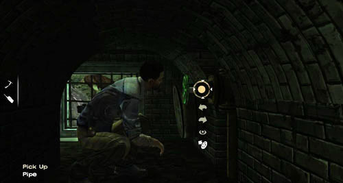 After you've "landed" you can look at a Dead Rat. Lee will not want to touch it (Pick Up: Dead Rat). Go to the left, and when the scene changes - move straight ahead and then left again. Along the way you can look at the Pipe on the right.