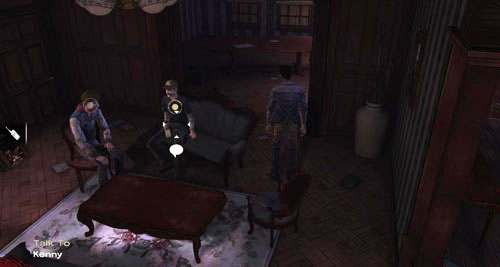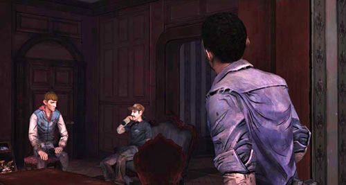 The ground floor has been thoroughly presented in the first chapter and nothing new has appeared here. Of course, you can still try to find Clementine behind the closed doors, etc., but she will not be there. Go to the left and enter the living room. Ben and Kenny are sitting there. The latter appears to be happy, and the bottle of whiskey in his hand explains why. Your answer may be important - see the table below. If you care about Kenny, it is best to remain silent (4). It is interesting to know that if you beat Kenny on the train in the third episode, he will go back to that and tell you that he's a better fighter when he is drunk.