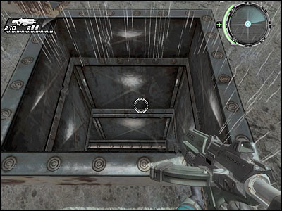 You may proceed to a new room of the building complex. Doing this will allow you to reach a roof with a large neon. Just as before, you won't encounter any enemy soldiers here, so go ahead and proceed to your right. You will have to find a large hole here (screen) which leads to the ventilation shaft. Use it. Once you're inside the shaft, start moving forward. You will have to choose a crouching stance here.