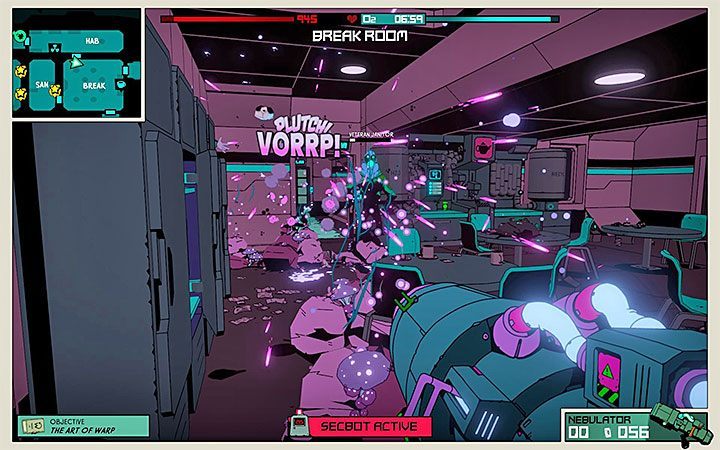 Zapper, in our opinion, is the most useful weapon in the whole game. This stun gun works well with your preferred Void Bastards gameplay style, which focuses not on defeating enemies, but on getting to the loot quickly and taking as many items as possible with you. The Zapper can be used primarily to stun and confuse most of the enemies you encounter, as well as the more elite ones of the following nebula depths. These weapon can also be used to temporarily sabotage turrets, robots and cameras. After each successful action, it is best to continue exploring and collecting the loot right away. Don't waste time or ammunition to get rid of your opponent or machine at any cost. Deviate from this rule only in rooms where you want to stay longer. In such situations you can get rid of a defenseless opponent or protection device.