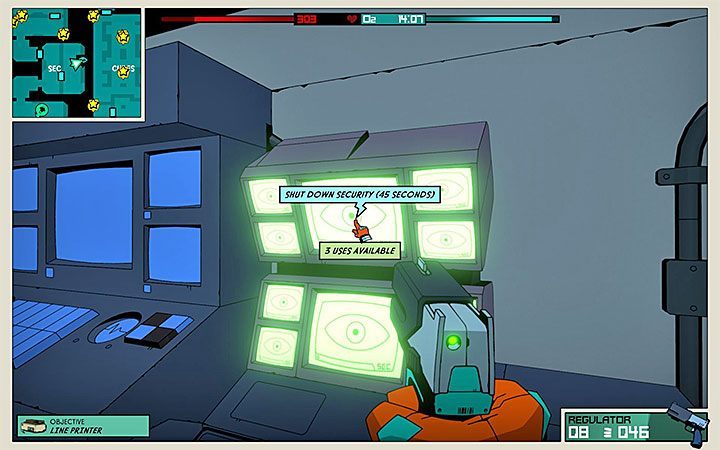 In the security room can sabotage the turrets and bots. You should always look around for security rooms (SEC). You can temporarily disable the local security systems (security position shown in the image) or pay with credits for a permanent sabotage. This second option is a good idea if you have to explore a large ship with several rooms in which there may be turrets and other protective systems.