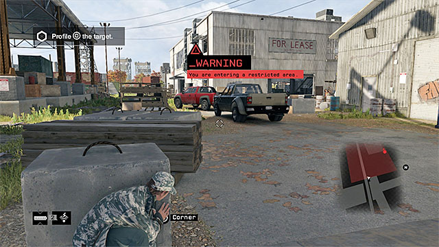 After you approach the restricted area, activate the Profiler and start hacking into the nearby cameras, while marking the enemies patrolling this area. After you have checked out the area, head towards the abovementioned warehouse. As for the enemies that you encounter, you can eliminate, distract or walk around them.