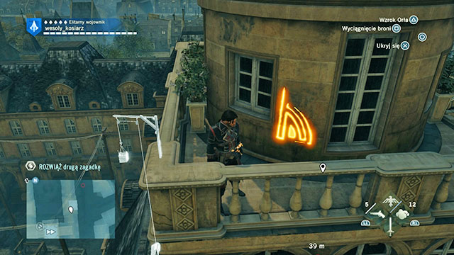 At the beginning of the mission, climb onto the roof of the building and deal with all the snipers and other opponents. Thanks to this, they will not bother you, later into the mission. Your target, Roux, is right next to the building. Stand on the roof, right above him and air-assassinate him. Then, use smoke bombs and run towards the wall/ Climb onto the wall, jump off to the street and become anonymous. The opponents cannot get past the wall, if there is no gate around. This is why they stop chasing you, as soon as you leave the mission area.