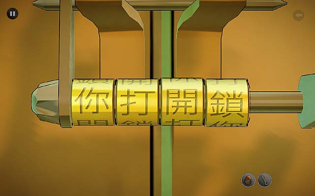 At first look at the cabinet which is closed by padlock with Chinese symbols. The hint how to open the cabinet is on the beige discs which you can see on the cabinet.