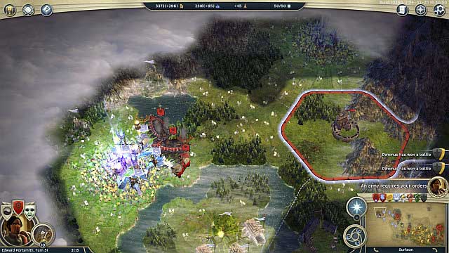You can find the cities of the net opponent, if you keep going to the North-West. Again, there are no surprises here - the Throne City is heavily guarded. Take advantage of that and, if you need to supplement your armies, capture one of the better-developed cities and wait for a moment, until you are able to expand your army. Once you decide to attack the Throne City, make sure that your army is powerful enough. After the victorious besiegement, the road to the final opponent is wide open for you.